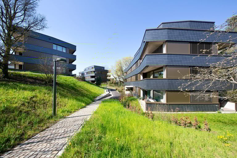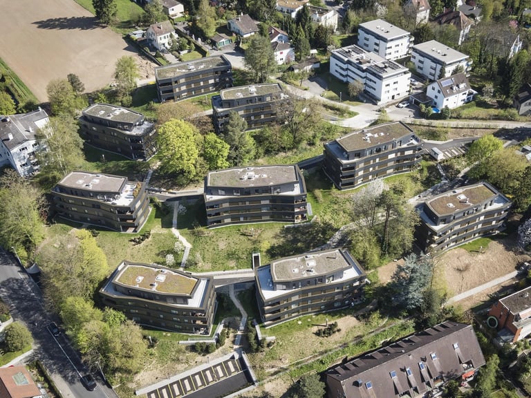 9 MFH mit 21 Eigentumswohnungen und 49 Mietwohnungen, 2 Einstelhallen