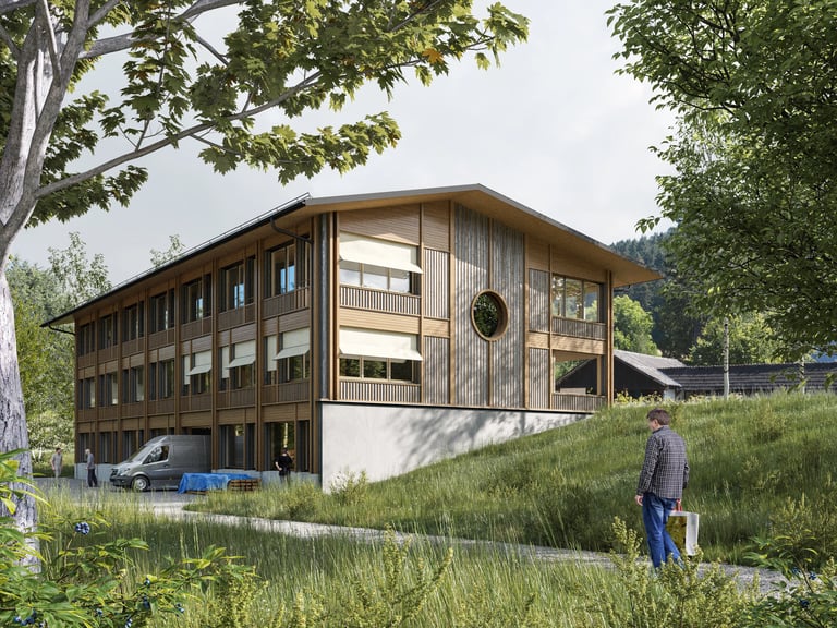 Bauleitung für den Neubau mit Werkstatt, Büroflächen und Arbeitsplätzen. Zweisprachige Ausschreibung und Bauleitung (DE/FR) für einen reibungslosen Bauablauf.